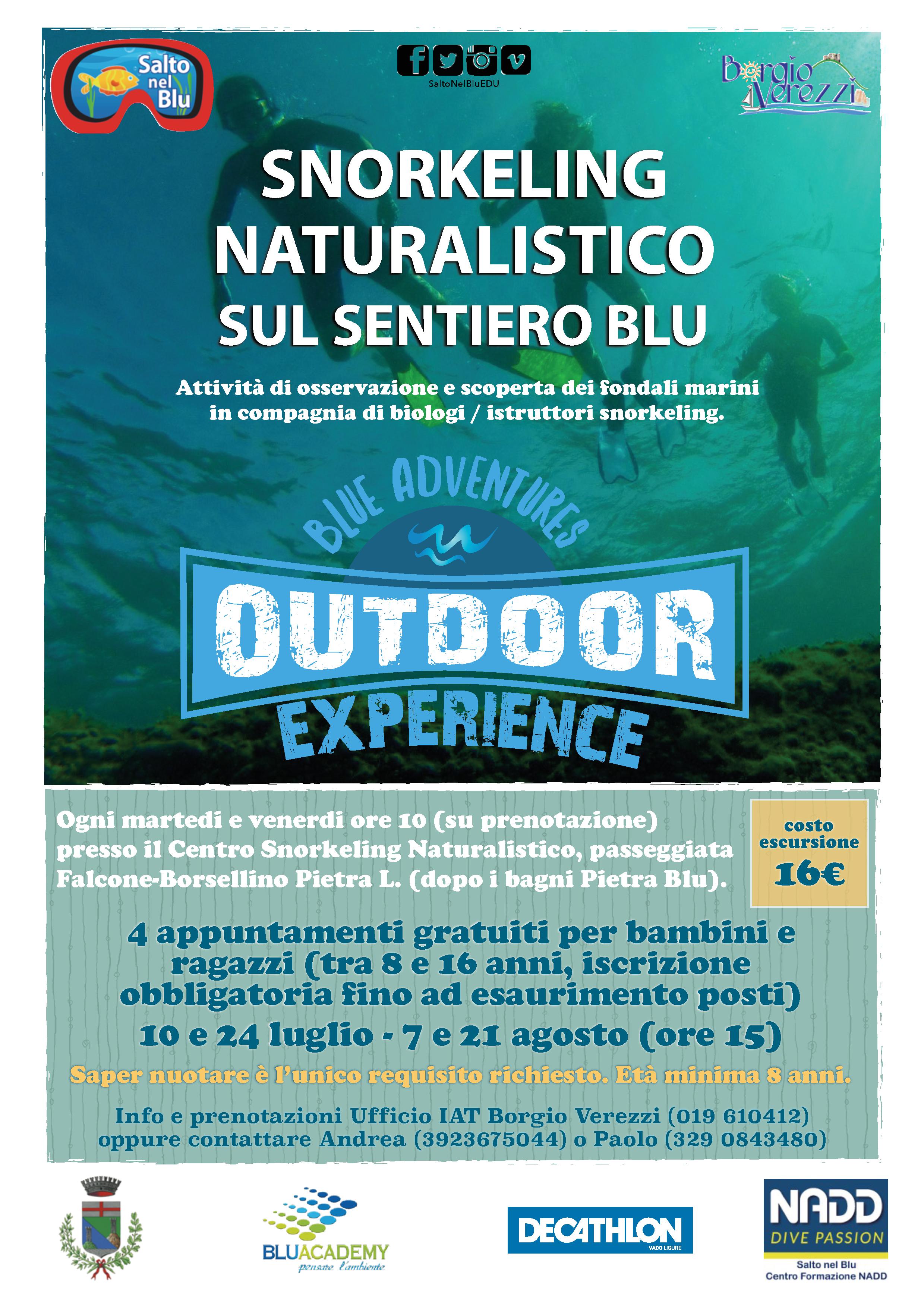 SNORKELING NATURALISTICO SUL SENTIERO BLU – Attività di osservazione e scoperta dei fondali marini in compagnia di biologi / istruttori snorkeling (Salto Nel Blu)
